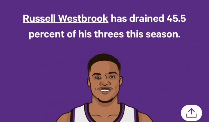 神一回合 鬼一回合!本赛季威少三分命中率45.5%但也多次三不沾!
