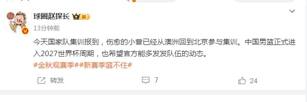 只是曾凡博尚未决定自己的“下家”,他如今优先选择响应国家队的征召回国效力。曾凡博已经返回到北京到中国男篮国家队报道,将参加接下来的国家队集训,为即将到来的2027篮球世界杯预选赛第一窗口期比赛做准备。